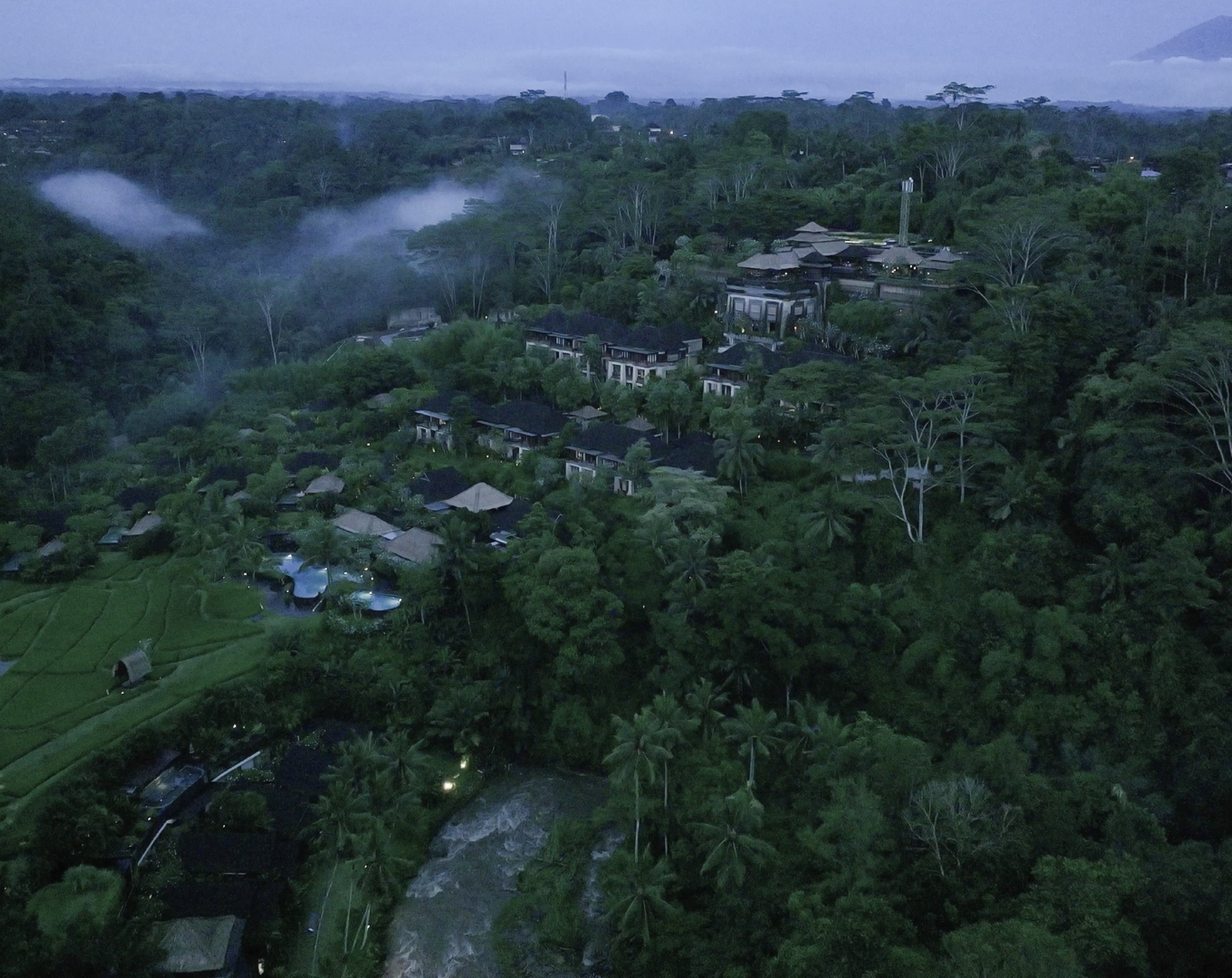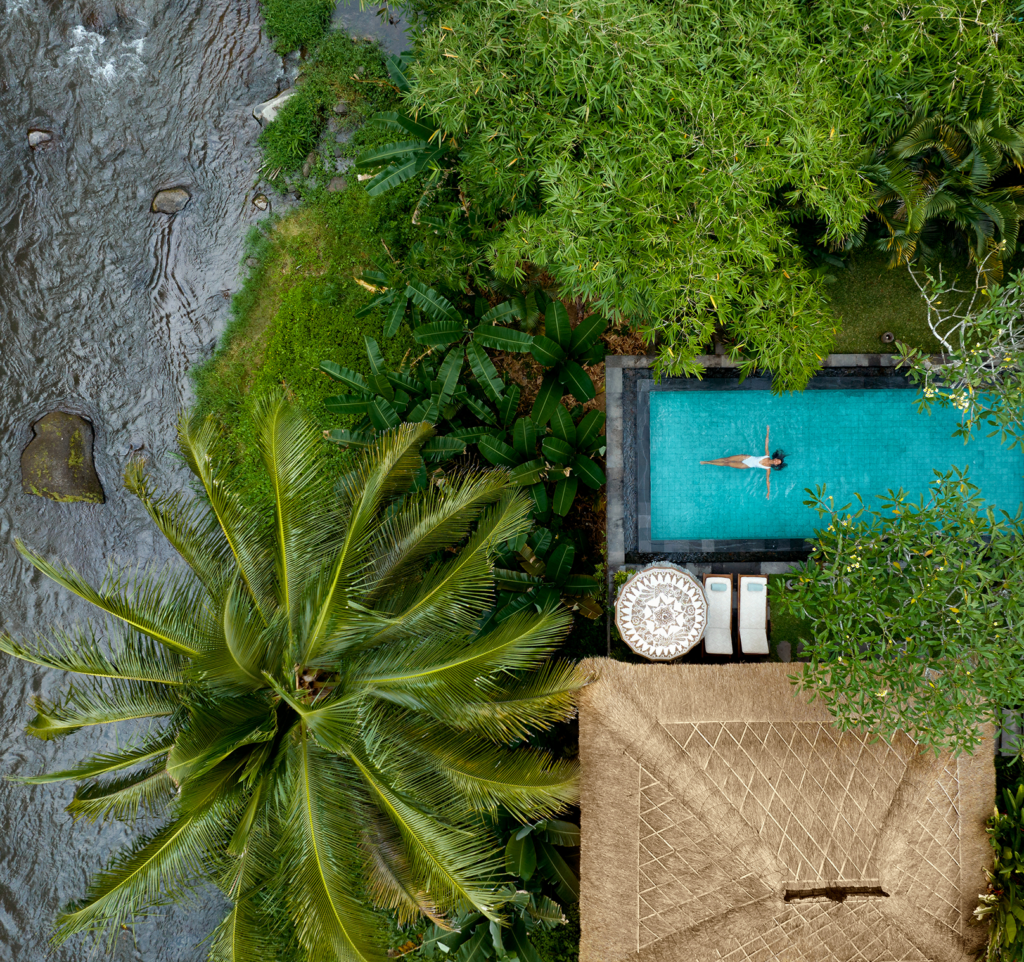 And at 3:17 a.m., from the terrace of a private pool villa, the darkness is total. Not metaphorical. Total. The only sound is the Ayung River moving against stone.